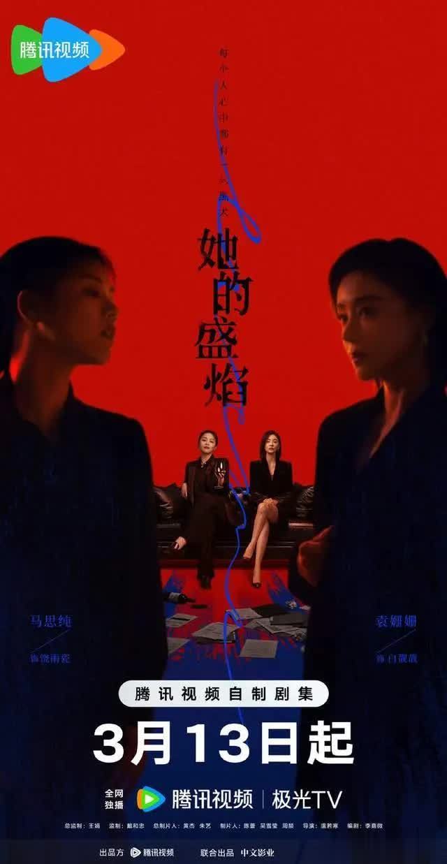 《她的盛焰》剧情介绍《她的盛焰》 于2026年3月13日在腾讯视频开播,全剧共30集,由《庆余年》导演温若寒执导,马思纯、袁姗姗、宁理与翟子路主演。